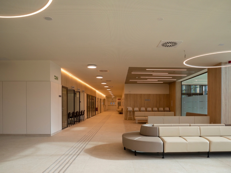 Centro de salud Vithas Turia, Valencia: Un proyecto de iluminación integral de nuestro departamento de proyectos que abarca todas las zonas del hospital, desde las áreas comunes hasta los quirófanos. El diseño lumínico no solo tiene en cuenta la funcionalidad y la seguridad, sino que también prioriza aspectos como la temperatura de la luz y la armonía visual, creando entornos más agradables que favorezcan la recuperación de los pacientes y optimicen las condiciones para los tratamientos y procedimientos médicos.