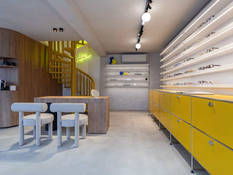 Óptica Leon Lunetier, Francia: Un proyecto de iluminación llevado a cabo por Détail Studio que potencia las características más importantes del ambiente y permite dirigir la mirada hacia el producto.