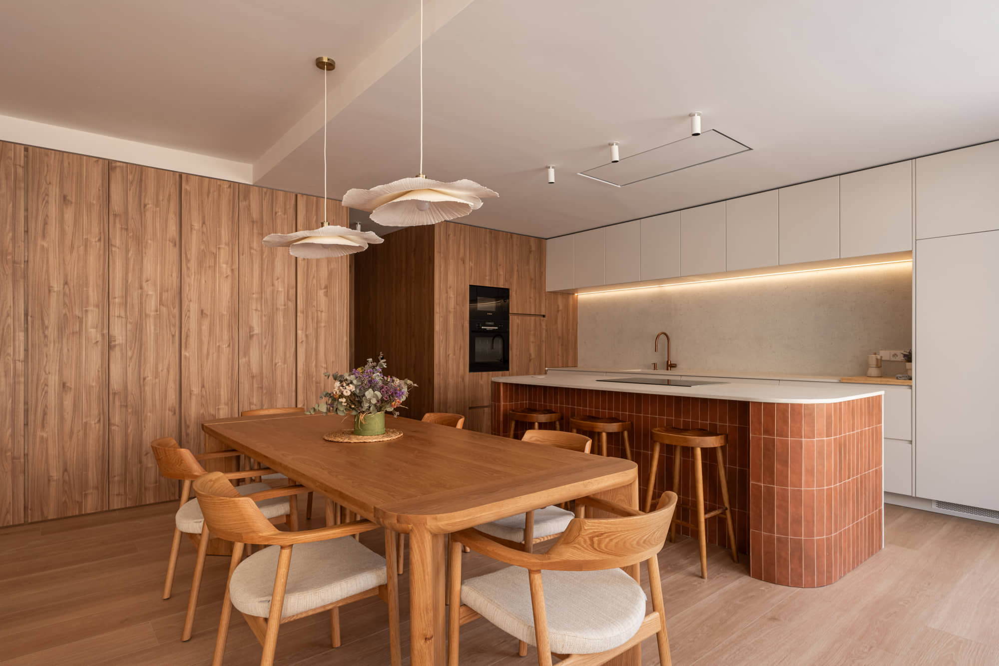 El estudio PI Arquitectura, liderado por la arquitecta Pilar Pintado Izquierdo, presenta una vivienda donde dos arquitectos han buscado equilibrar lo mexicano y lo español. El resultado es un espacio que combina calidez, serenidad y una paleta de tonos muy cuidada. El claro hilo conductor del proyecto es el color terracota. Y no lo es de forma casual: es un tono que conecta con la tierra, con la tradición de ambos países, y al mismo tiempo aporta continuidad visual al espacio, encontrándose tanto en las paredes de la cocina y el baño como en detalles tan sutiles como nuestros proyectores Stan.